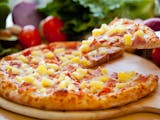 Turkey ham, pineapple, mozzarella, and tomato sauce.
