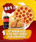 Sicilian Dough 16-inch pizza made with Milk, and a choice of 3 toppings. Shape availability: Round or Rectangle