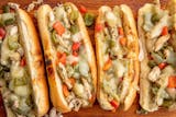 Capicola, ham, salami, provolone cheese, field greens, tomato, cucumbers, onion, carrot, Kalamata olives.