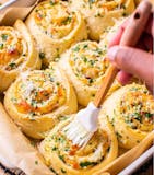 A customer favorite! Our signature fresh dough is rolled with mouth-watering red sauce, pepperoni, and mozzarella cheese. Served with our house-made signature sweet and tangy marinara sauce. Brushed with melted butter, garlic, and parsley & parmesan cheese.